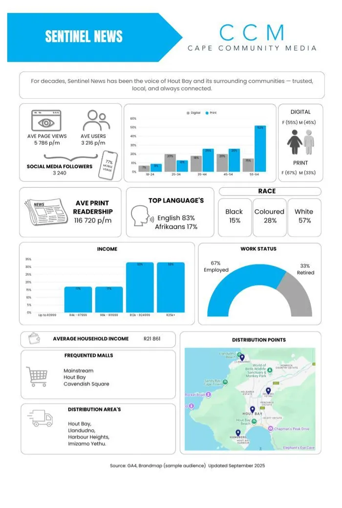 The Sentinel News is an Africa Community Media (ACM) title. ACM are publishes of: Athlone News | Atlantic Sun | Bolander | CapeTowner | False Bay Echo | Plainsman | Sentinel News | Southern Mail | Southern Suburbs Tatler | Tabletalk | Northern News Goodwood/Parow | Northern News Bellville/Durbanville | Northern News Kuilsriver/Brackenfell/Kraaifontein | DFA | I’solezwe lesiXhosa | DurbanLocal